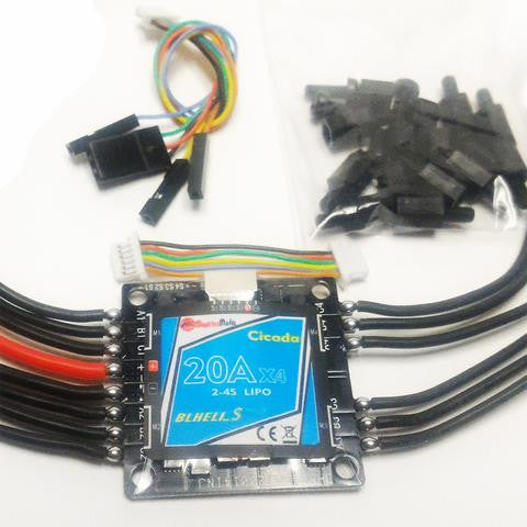 Now with 5v output! This is the latest BB2 version. The Sunrise Cicada BLHELI-S Upgrade BLHeli 20A 2-4S Programming Multishot ESC for RC Quadcopter runs on BLHeli-S firmware that is designed for superior performance in multirotors and uses hardware generated motor pwm for smooth throttle response and silent operation. The code supports features to prevent sync loss. There are tuneable parameters that can make the code run well even in the most demanding situations, although default settings will work excellently in normal operating environments. The code also supports regular 1-2ms pulse width input, as well as Oneshot125 (125-250us), Oneshot42 (41.7-83.3us) and Multishot (5-25us).The input signal is automatically detected by the ESC upon power up. Can also run Dshot 150 to Dshot 600.