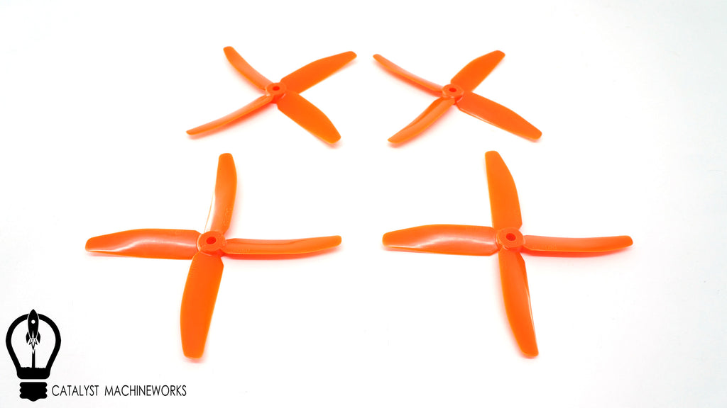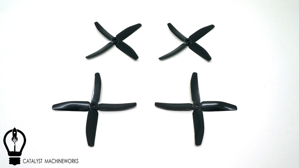 5040 quadblade have a thicker hub connection, which is perfect for racing. These props REALLY ARE damn near indestructible. On hard crashes they will bend where other brands will just break. But, many times they don't bend. In the event they do bend you can take your hand and simply bend them back into place and go fly again! This is a major reason these props are becoming wildly popular...